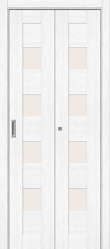 Складная межкомнатная дверь MRB-1116 в цвете «белый» — аккуратная дверь с нейтральным дизайном на каждый день. Покрытие — Эко Шпон. Отделка: Эко Шпон (структурный материал с защитным слоем оверлея (Южная Корея). Отличается высокой* стойкостью к истиранию и механическим повреждениям.…) Вставка стекла: Сатин.