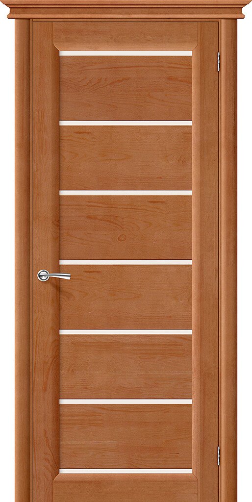 Межкомнатная дверь MRB-4610 в цвете «коричневый» — вариант для тех, кто хочет обновить интерьер без лишних сложностей. Покрытие — Массив. Отделка: Двухкомпонентный полиуретановый лак. Вставка стекла: Матовое.
