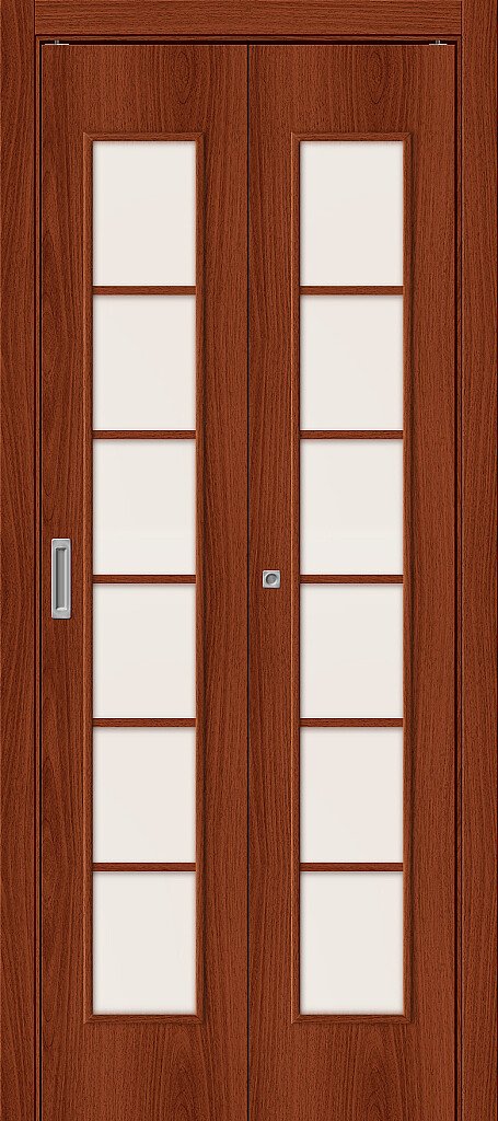 Складная межкомнатная дверь MRB-8911 в цвете «орех» — аккуратная дверь с нейтральным дизайном на каждый день. Покрытие — Винил (ПВХ). Отделка: Finish Flex 2D (декоративный материал с защитным лаком. Германия, Польша.) Вставка стекла: Сатин.