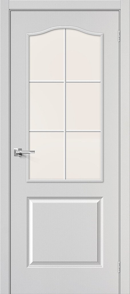 Межкомнатная дверь MRB-9113 под покраску — аккуратная дверь с нейтральным дизайном на каждый день. Покрытие — Строительные. Отделка: Загрунтовано (под окраску). Вставка стекла: Сатин.