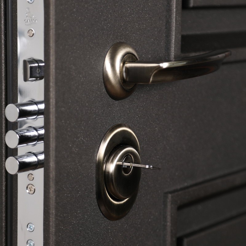 Модель оснащена замками: нижний — Galeon 816 (цилиндровый)., верхний — Galeon 817 (сувальдный).. Это обеспечивает надежность и удобство эксплуатации.