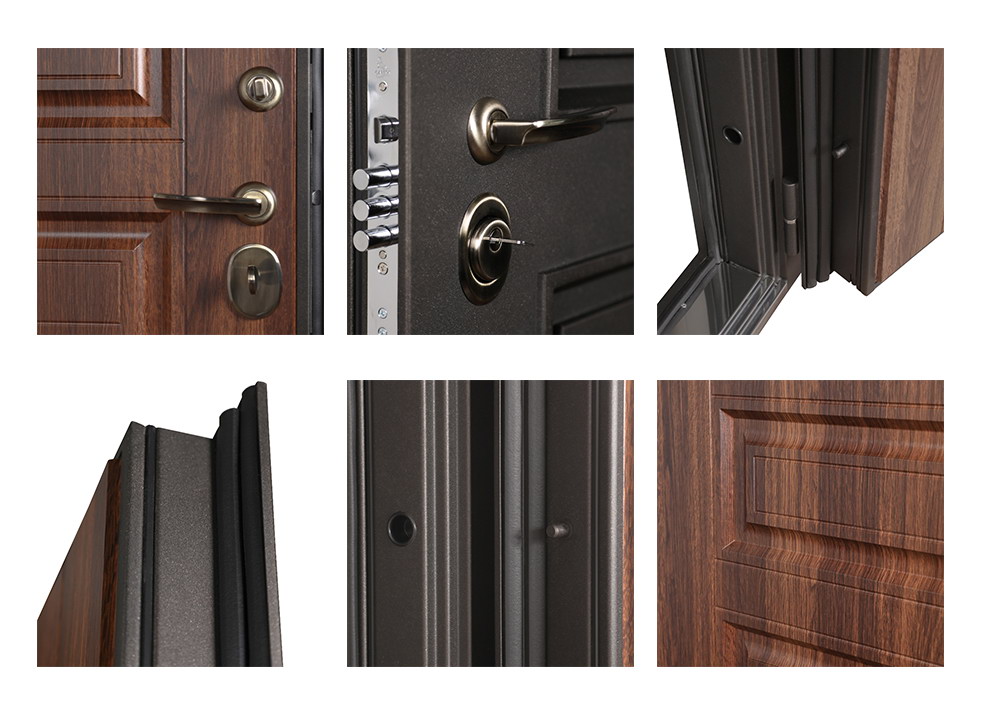 Дверь оснащена базовыми элементами защиты, повышающими устойчивость конструкции.