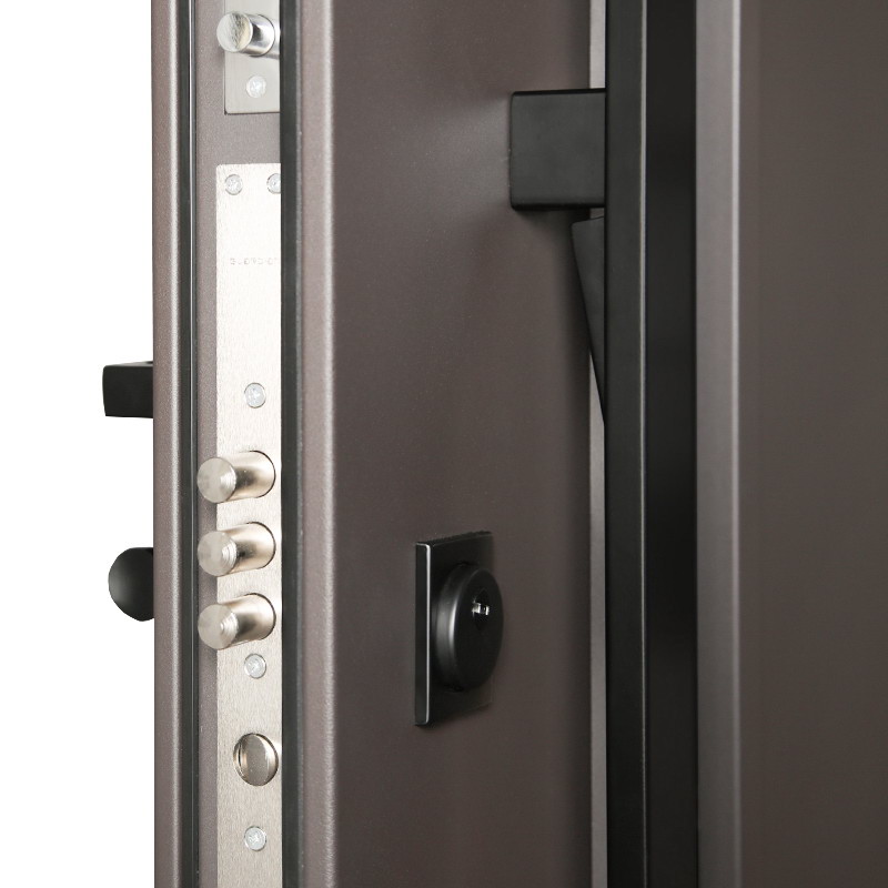 Дверь оснащена базовыми элементами защиты, повышающими устойчивость конструкции.