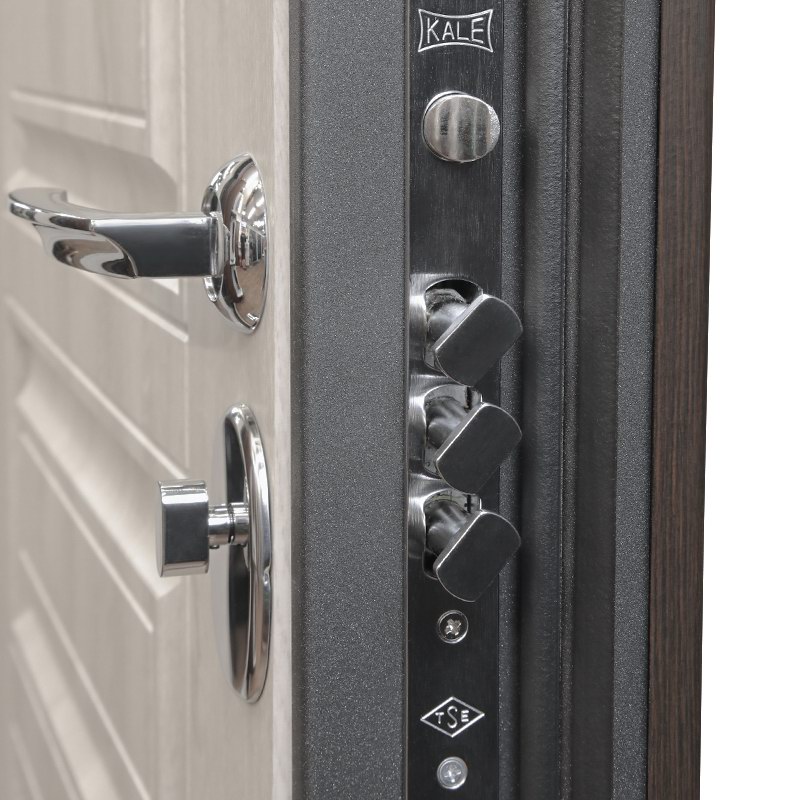 Модель оснащена замками: нижний — Kale 282 RD (цилиндровый)., верхний — Kale 257 (сувальдный).. Это обеспечивает надежность и удобство эксплуатации.