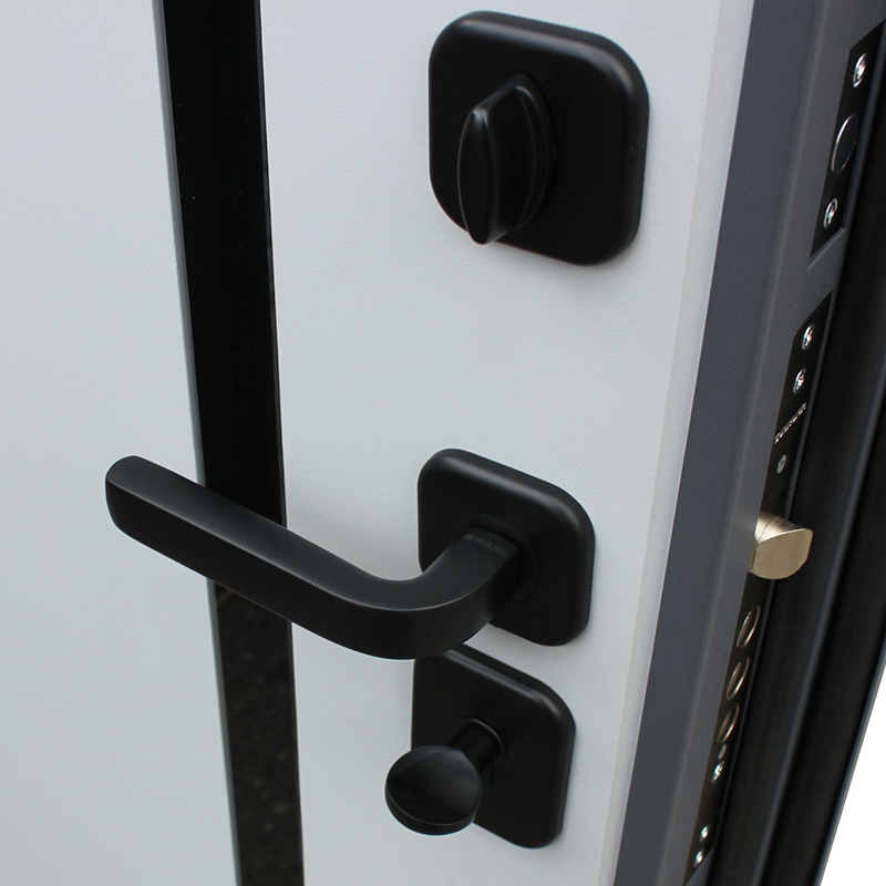 Дверь оснащена базовыми элементами защиты, повышающими устойчивость конструкции.