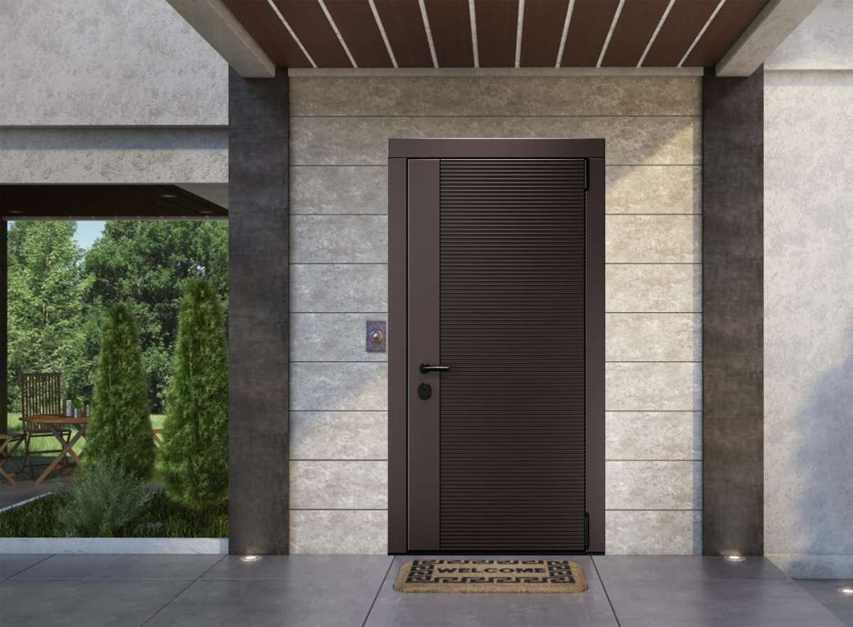 Входная дверь MRC-104 коричневый RAL 8019 подойдёт тем, кто ценит сбалансированное сочетание прочности, функциональности и эстетики.