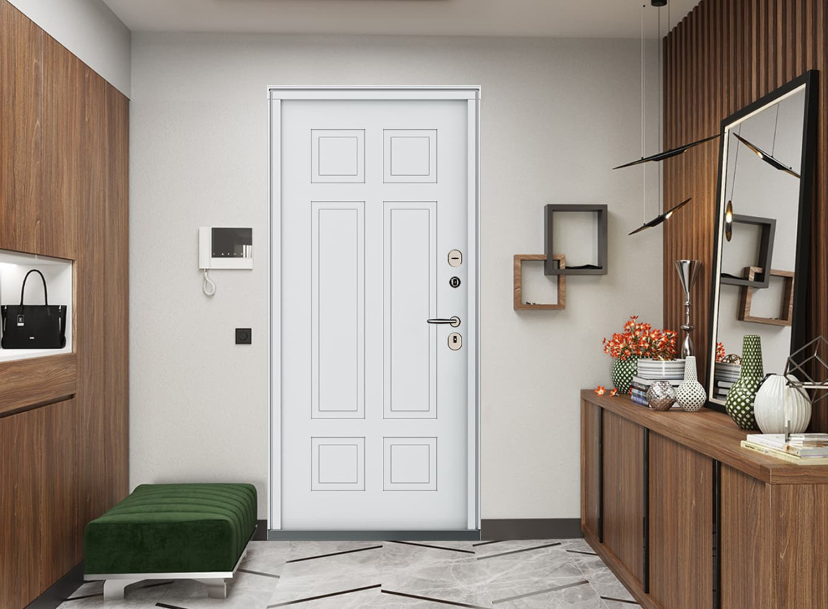 Входная дверь MRC-11 белый RAL 9003 2 замка (арт. MRC-1111) — дверь, разработанная для тех, кто ценит надёжность, устойчивость конструкции и продуманный функционал. Модель сочетает защитные элементы, качественные материалы и сбалансированное исполнение, подходящее для квартиры или частного дома.
