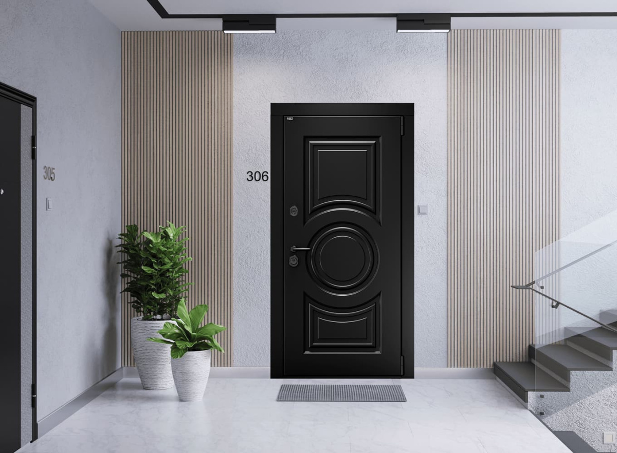 Входная дверь MRC-32 черный RAL 9005 2 замка подойдёт тем, кто ценит сбалансированное сочетание прочности, функциональности и эстетики.