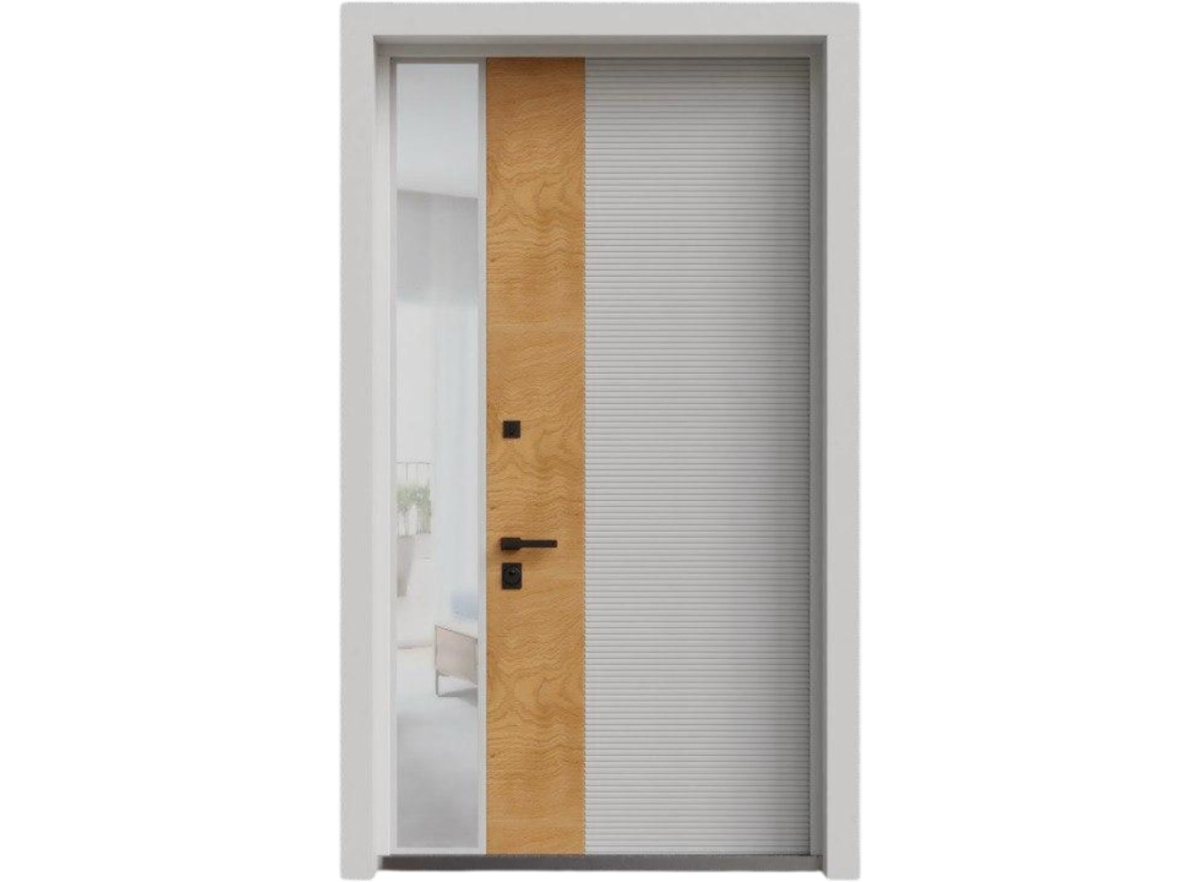Входная дверь MRC-68 белый RAL 9003 размер 2400x1300 подойдёт тем, кто ценит сбалансированное сочетание прочности, функциональности и эстетики.