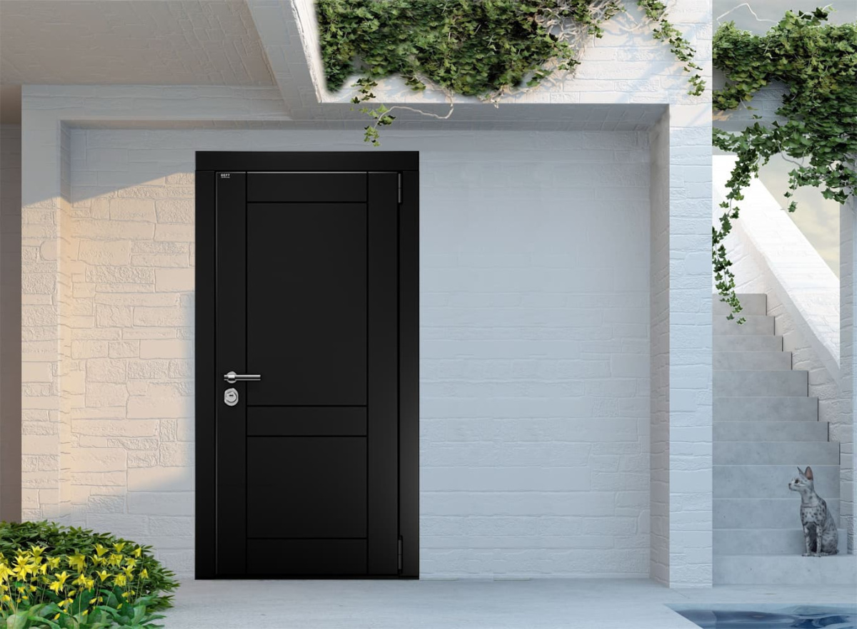 Входная дверь MRC-77 черный RAL 9005 подойдёт тем, кто ценит сбалансированное сочетание прочности, функциональности и эстетики.