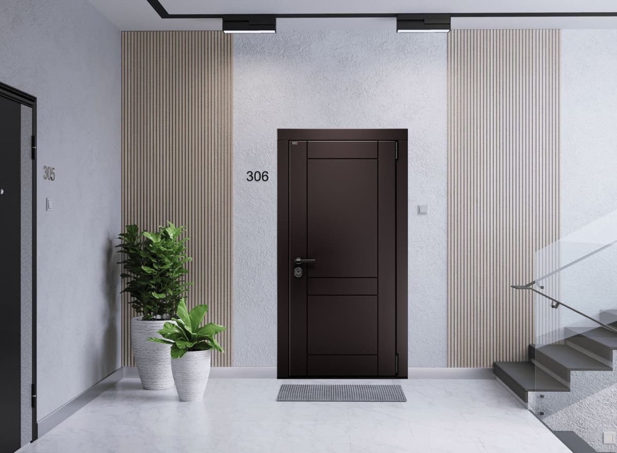 Входная дверь MRC-77 коричневый RAL 8019 подойдёт тем, кто ценит сбалансированное сочетание прочности, функциональности и эстетики.