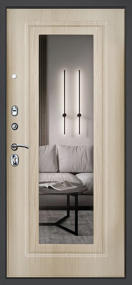 Стальная дверь «Викинг» с зеркалом (Стальная дверь «Викинг» с зеркалом) — современная стальная дверь, спроектированная с упором на надежность, стабильность конструкции и комфорт ежедневной эксплуатации. Модель сочетает продуманную инженерную базу и аккуратное внешнее исполнение, что делает её подходящей для квартиры, дома или коммерческого помещения.