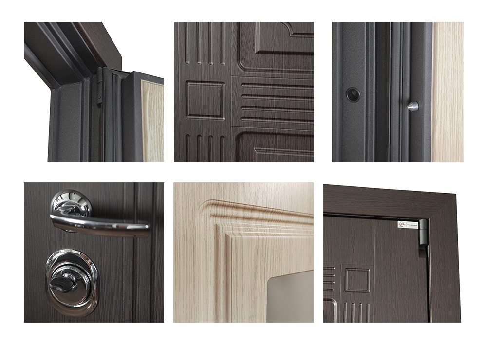 Дверь оснащена базовыми элементами защиты, повышающими устойчивость конструкции.